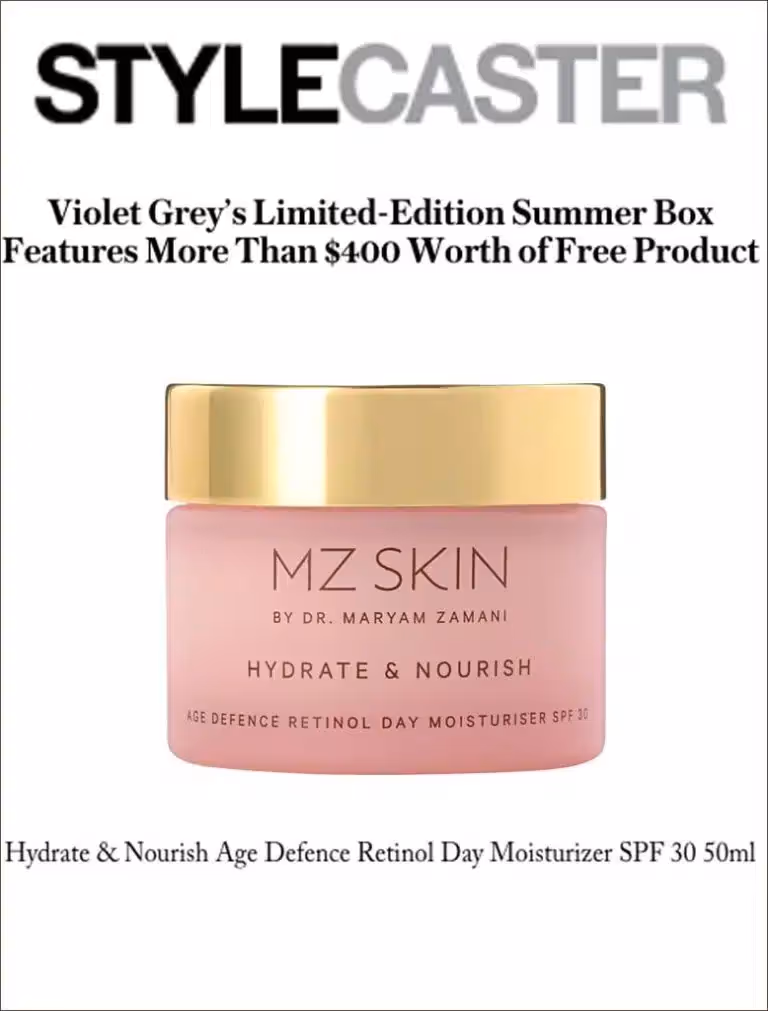 StyleCaster included MZ Skin Hydrate & Nourish Retinol Day Moisturiser SPF 30 in the Violet Grey’s summer box. …